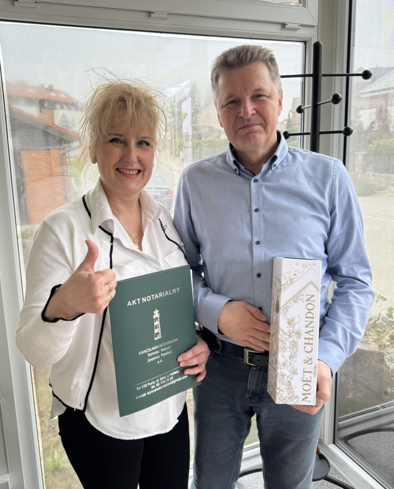 Zakup mieszkania na osiedlu Wiktoria Park III w Pucku jest spełnieniem naszych wieloletnich dążeń i marzeń posiadania swojego miejsca na ziemi nad polskim morzem. Decyzja zakupu nieruchomości była podyktowana pomysłem znalezienia naszego „second home” nad morzem właśnie. Po przejrzeniu ofert całej masy deweloperów z regionu Trójmiasta i okolic Pucka oferta osiedla budowanego przez Hewelt Deweloper przy ul. Adama Mickiewicza Wiktoria Park III, przykuła mocno naszą uwagę i wzbudziła ogromne zainteresowanie. Po pierwszym kontakcie telefonicznym widzieliśmy, że to jest „to” miejsce. Zabudowa osiedla wyróżnia się ciekawą stylistyką nawiązujący do architektury Kaszub. Podczas całego okresu przygotowawczego do podpisania aktu notarialnego byliśmy z mężem w stałym kontakcie i pod opieką Pana Mikołaj Soitz, który swoim pełnym profesjonalizmem, punktualnością, dokładnością, a także wyczerpującymi informacjami nt. etapów tej inwestycji - potwierdzał nasz wybór. W skrócie można określić to jednym stwierdzeniem: jest to właściwa osoba na tym stanowisku, będąca jednocześnie najlepszą wizytówką firmy Hewelt Deweloper. Ponadto skuteczność reklamy wizualnej w internecie przewyższa inne przeglądane przez nas oferty deweloperów. Serdecznie dziękujemy za pomoc i współpracę na etapie zakupu naszej nieruchomości.