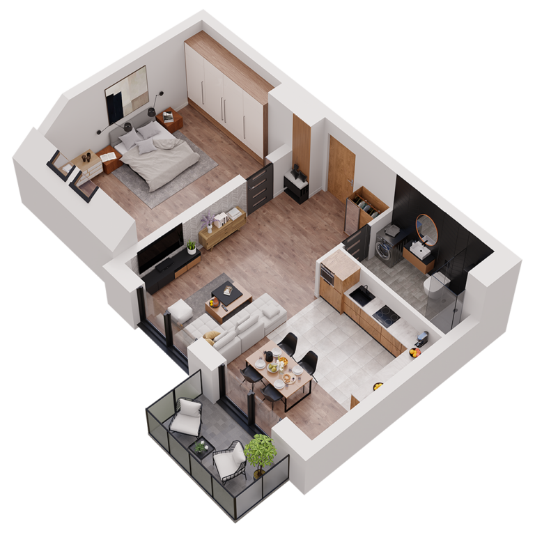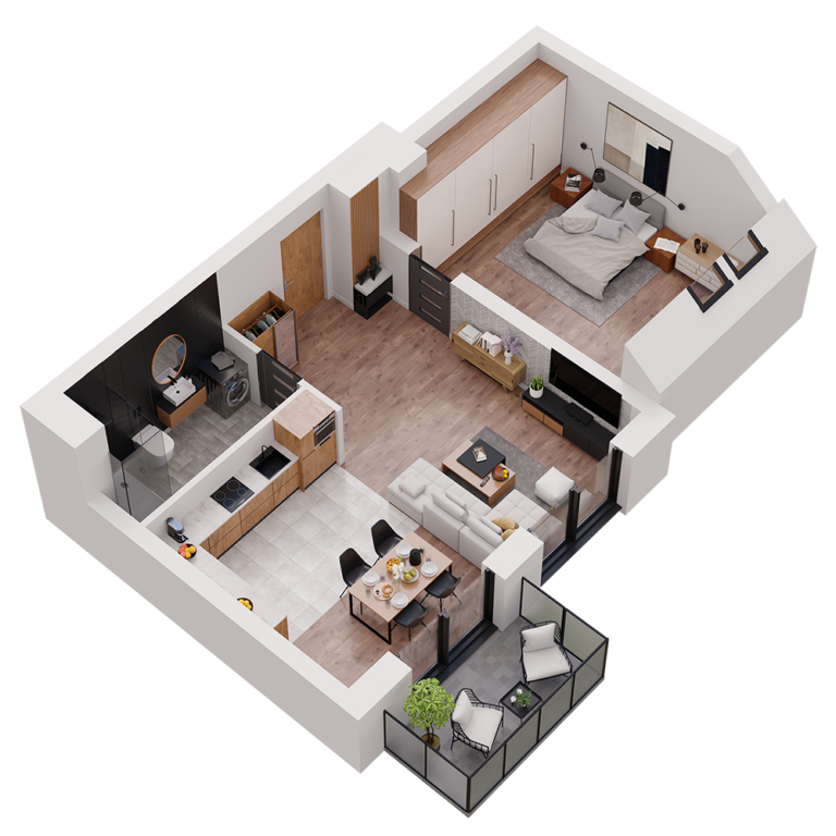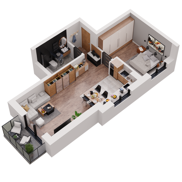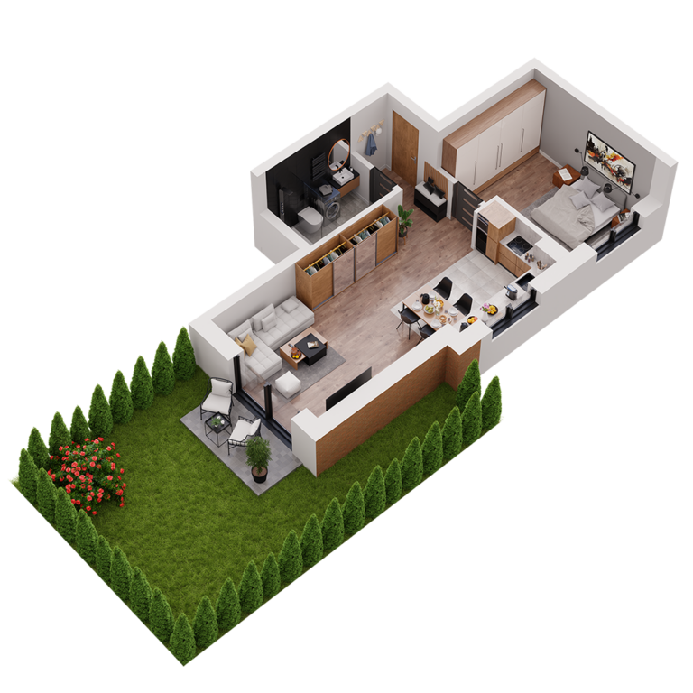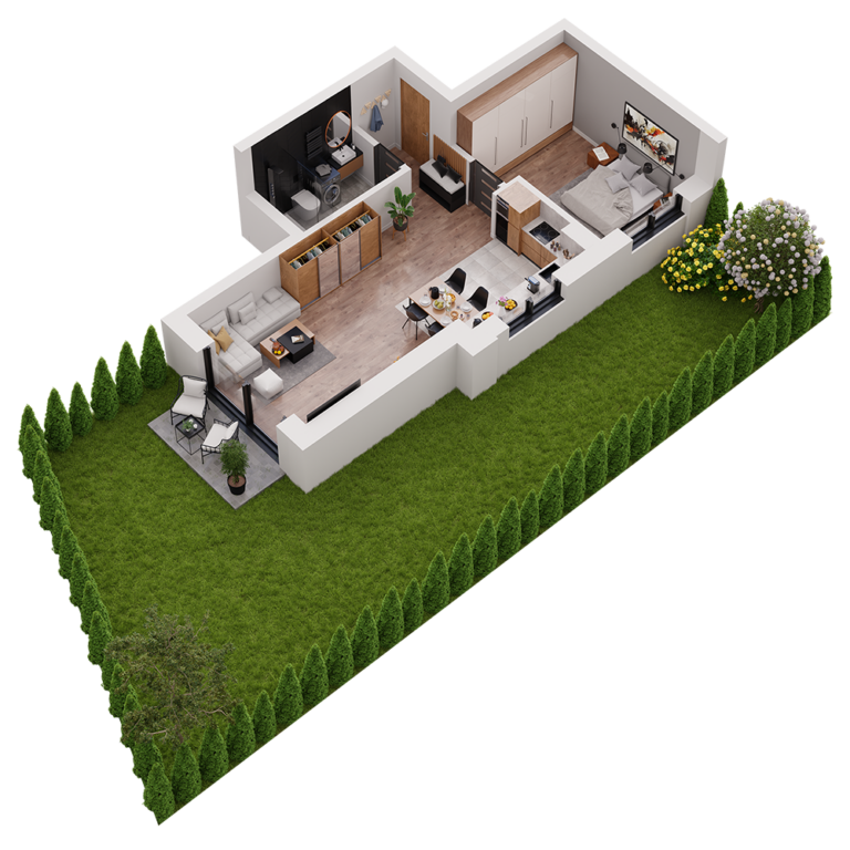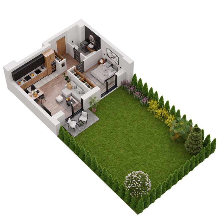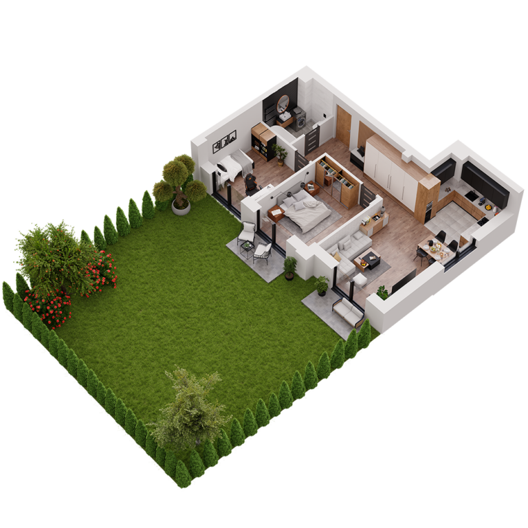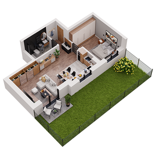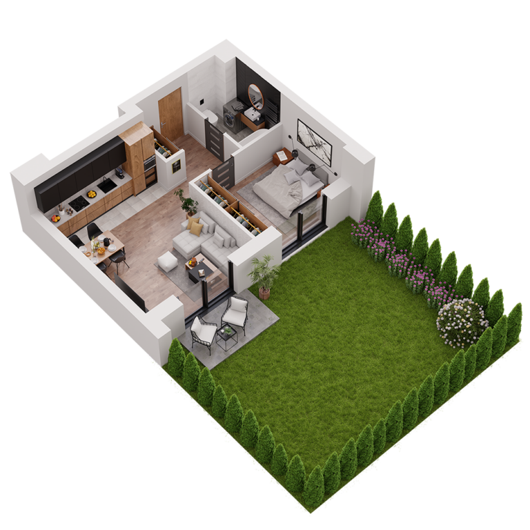W Twoim nowym mieszkaniu zawsze znajdzie się miejsce na relaks na świeżym powietrzu. Lokale na parterze oferują prywatne ogródki z tarasami – idealne na poranną kawę, spotkania z bliskimi czy chwilę relaksu po pracy. Mieszkania na piętrach mają przestronne balkony, które dzięki przeszklonym balustradom wpuszczają do wnętrz mnóstwo naturalnego światła.